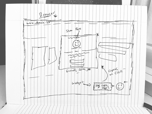 Here’s another prototype which shows the tiny welcome message in the lower right hand corner of the screen. When clicked the form will open. This feature was designed to increase form engagement. I set this so it can be turned on/off or even have a delay.