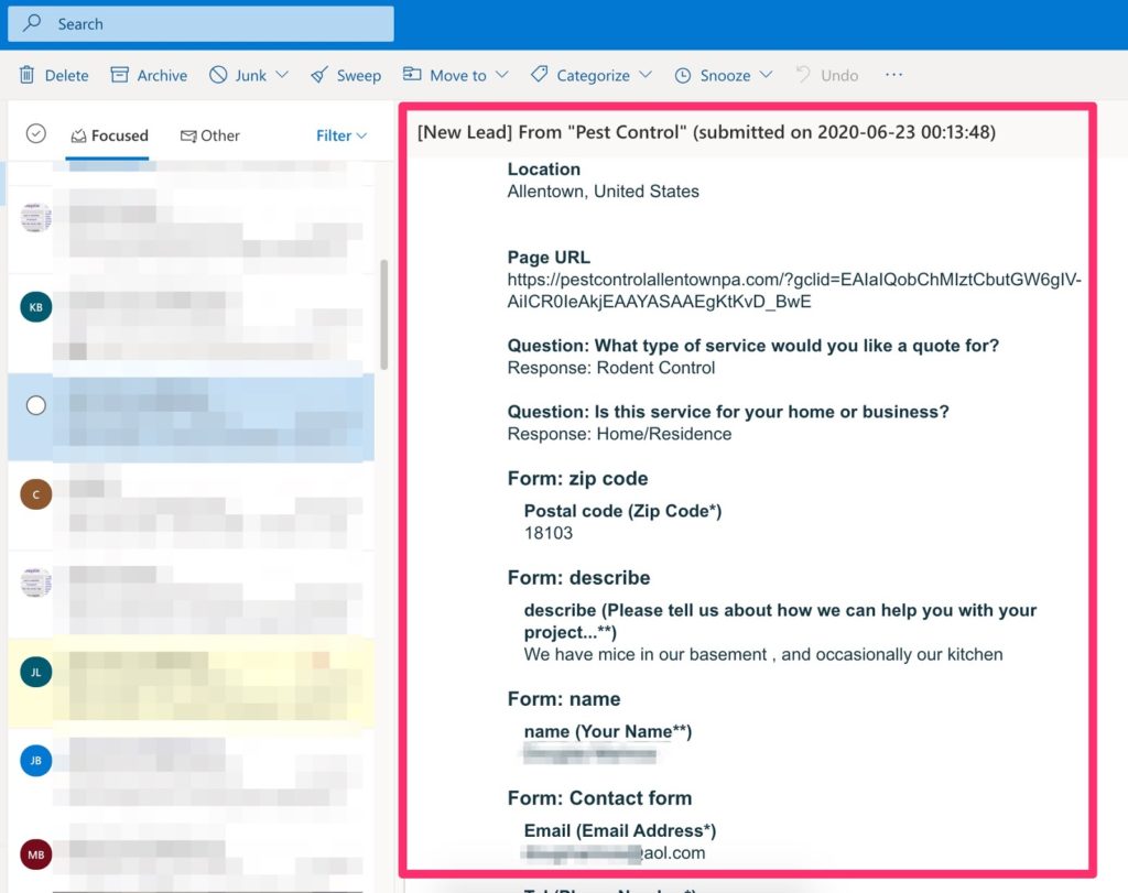 My client’s form conversion rate went from 3% to 9%. And he started getting, data rich leads like this: