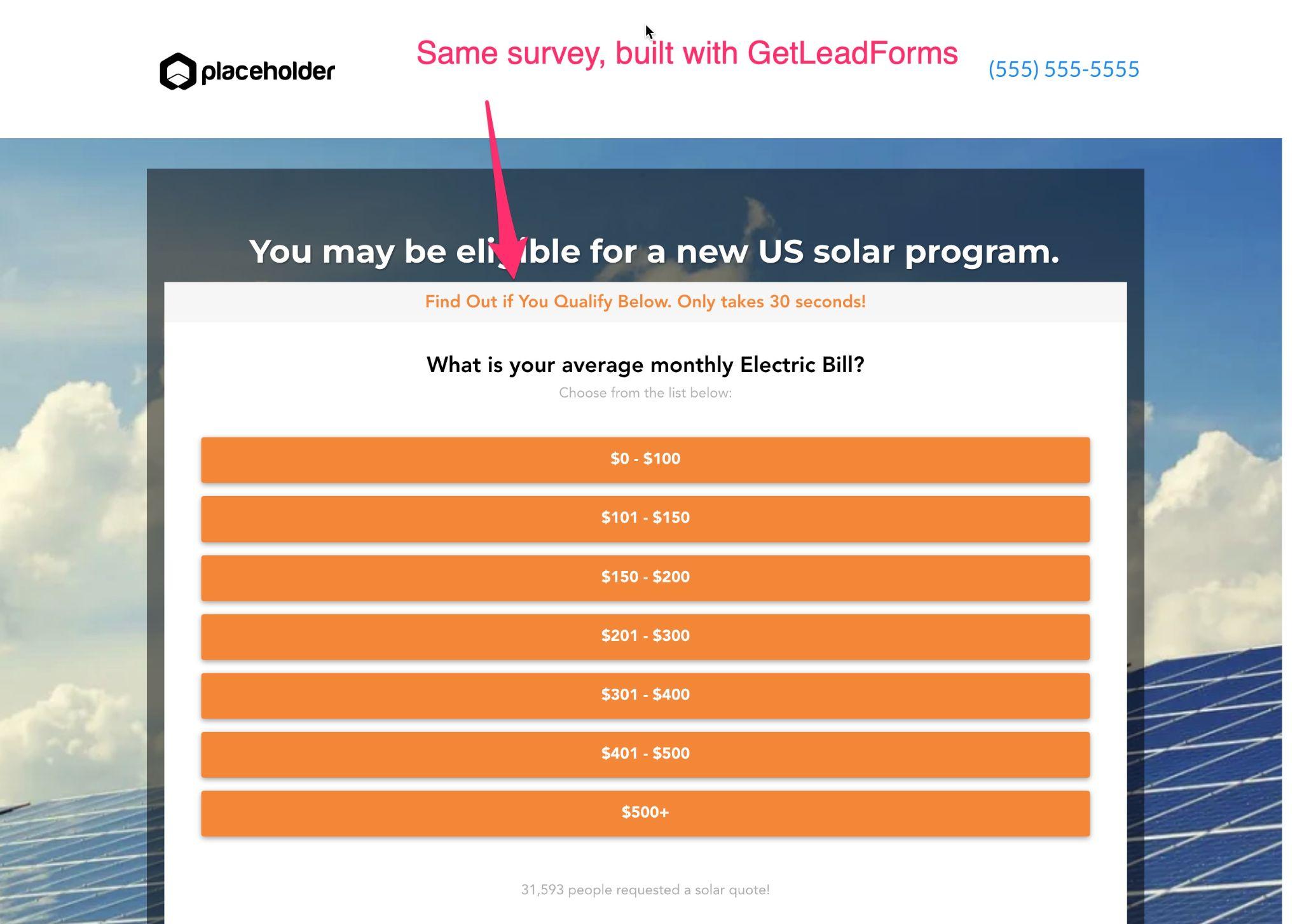 The biggest advantage of using GetLeadForms is that you can build better-looking surveys and multi-step forms in less time. It can help you elevate your form from this survey that was built with Go High Level.