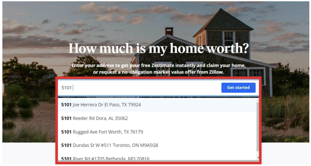 Zillow designed the process intuitively to ensure leads are inclined to fill out the home valuation form.