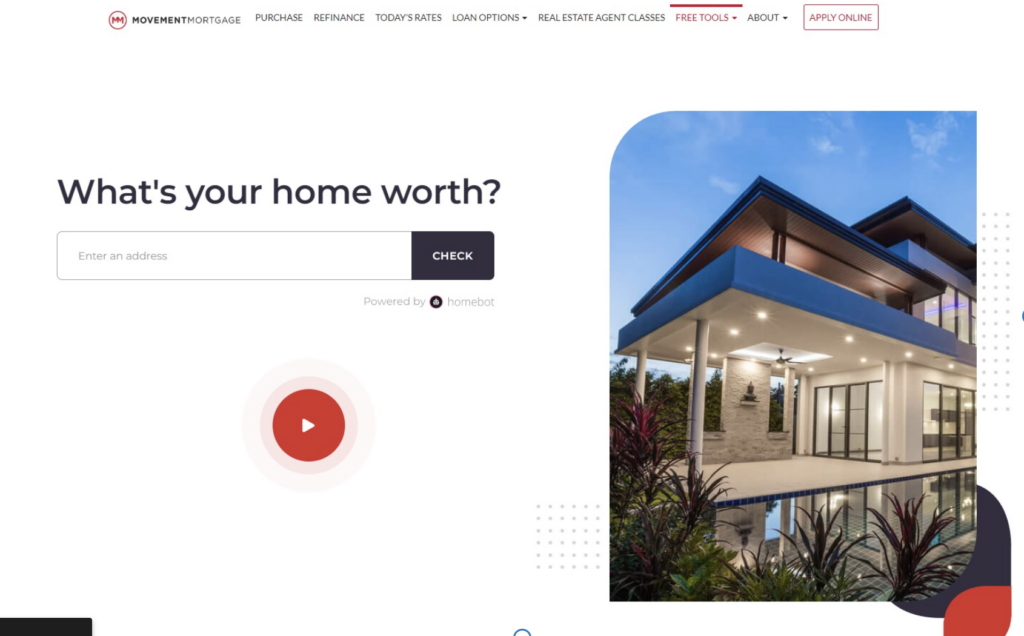 To better understand how to approach this, here’s an example from a great mortgage sites with a home valuation: Movement Mortgage.