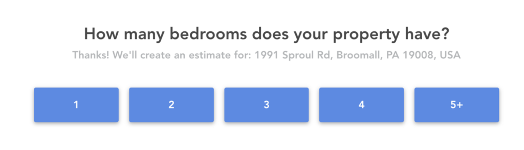 Zillow uses a multi-step form in its home value estimator widget to pre-qualify its leads. It’s available once the visitor clicks “Start Now.”