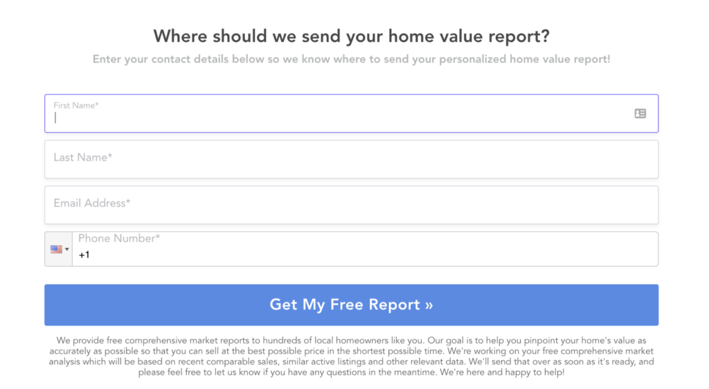 Note: Want to skip the hassle of building a free home valuation widget for your website from scratch? Snag this exact form and give it a whirl for free with GetLeadForms.