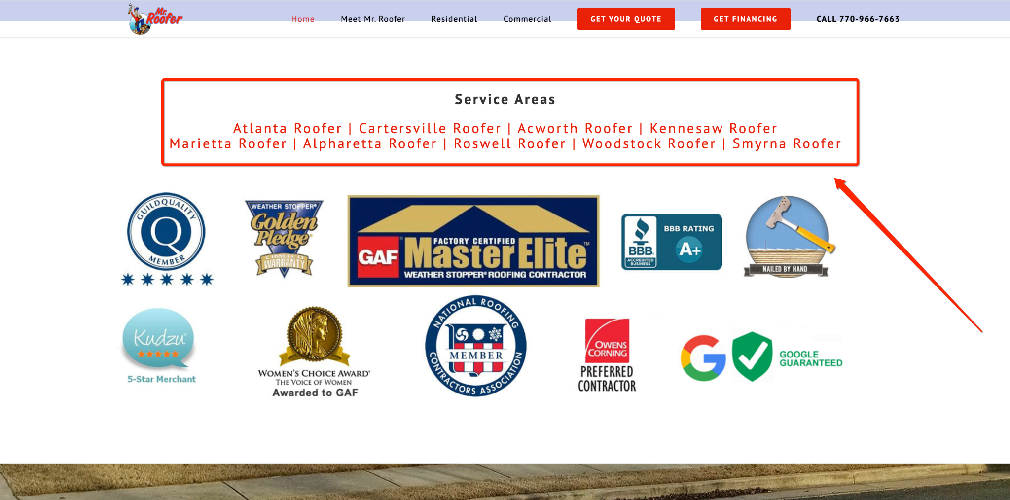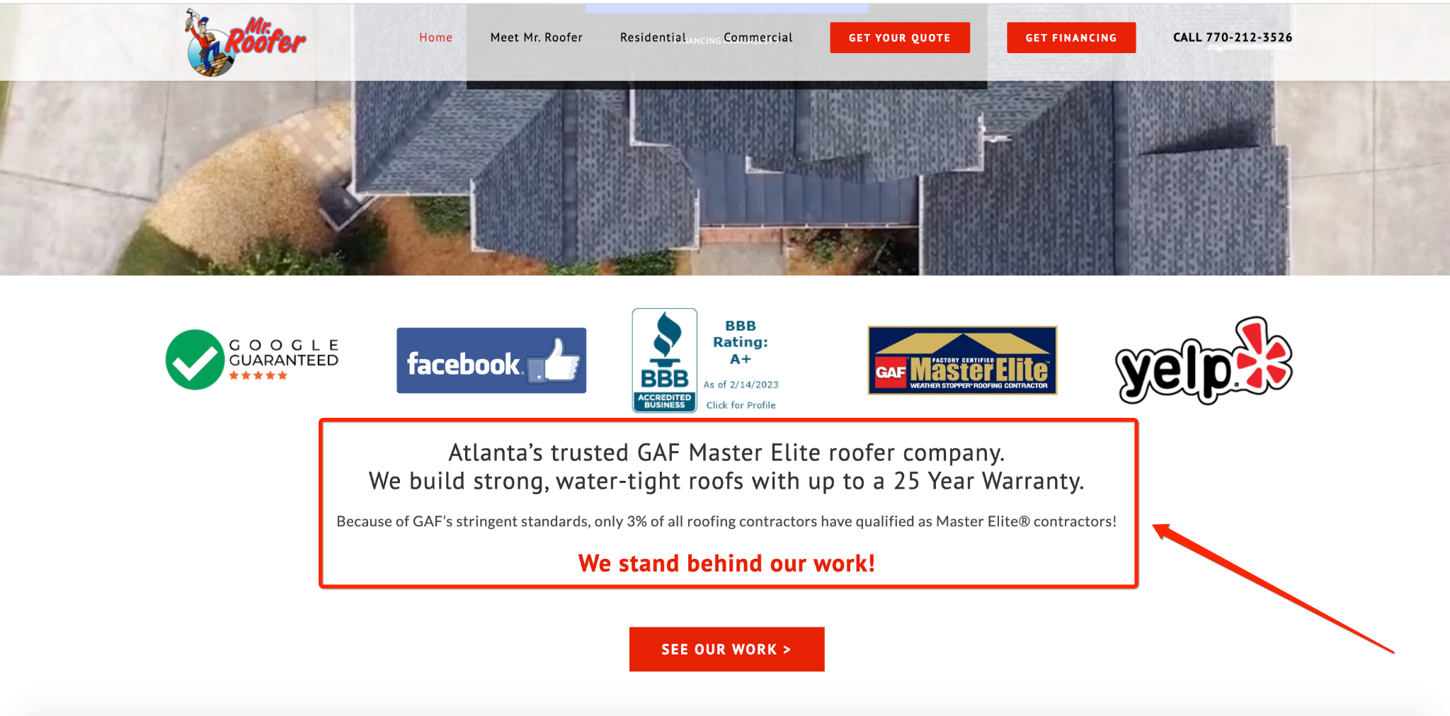 Again, Mr. Roofer of Atlanta addresses this head-on in their homepage above the fold.