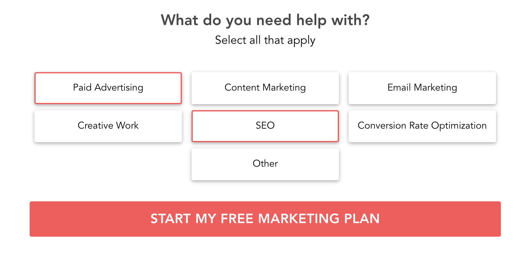 For example, with this agency form, we recommend offering a consultation or marketing plan based on the prospect’s response.