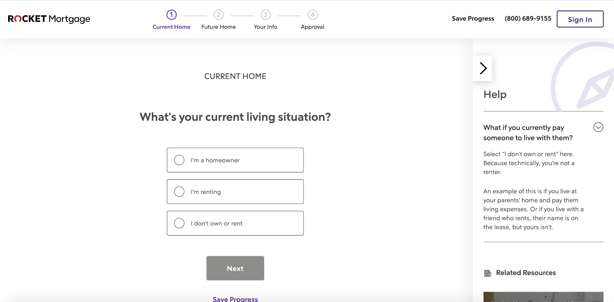 Also, notice at the top, Rocket Mortgage shows which stage they’re at in the form for quick reference, which is a nice touch.