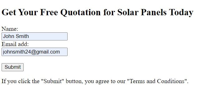 However, the shortcomings of a bad lead are usually universal and often the result of not asking the right questions in your lead form. Take a look at this example of a very basic opt-in form: