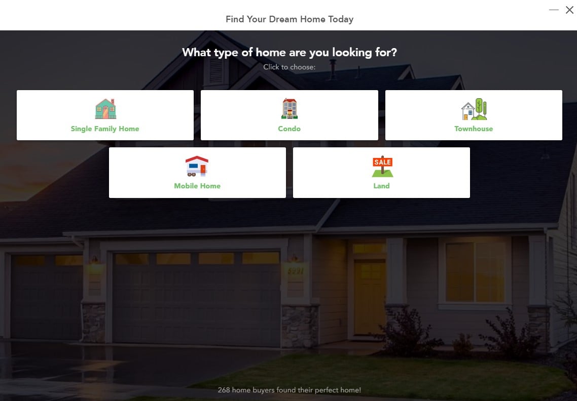 For instance, the leads need to choose what property type they want: