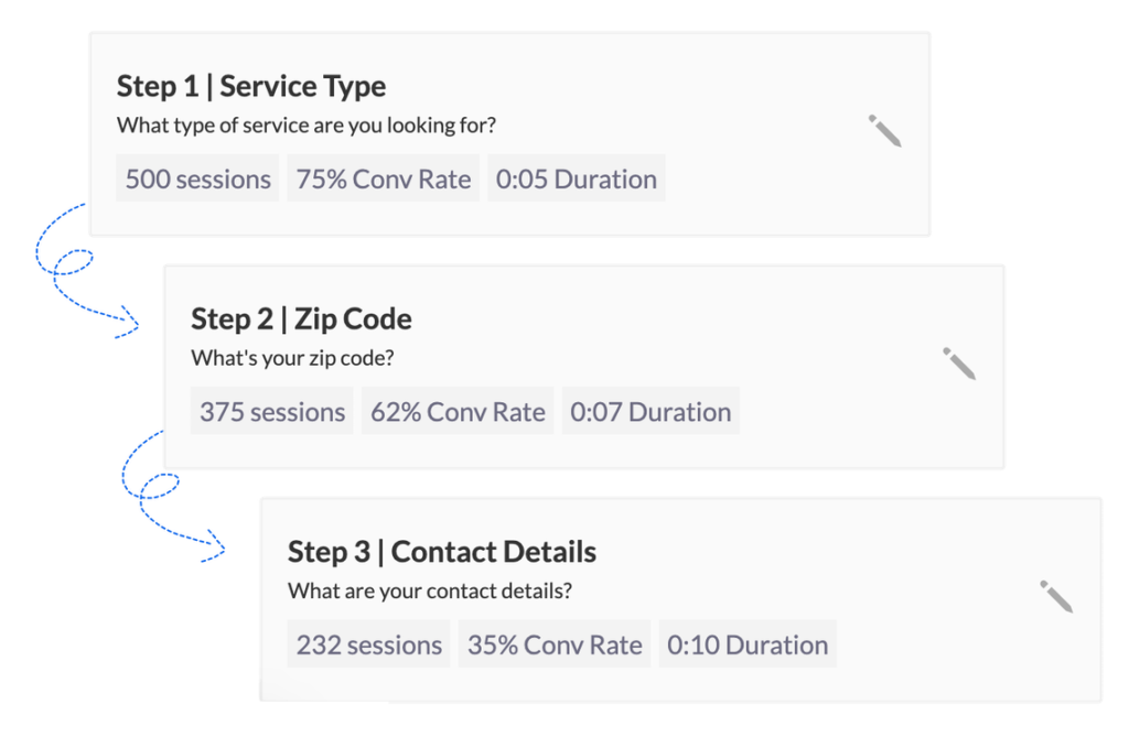 Steps that have the lowest conversion rates: These are the steps that you want to optimize. For example, if you’re asking the prospect for a budget and you’re using an open-ended form field, try changing this step to a slider instead.
