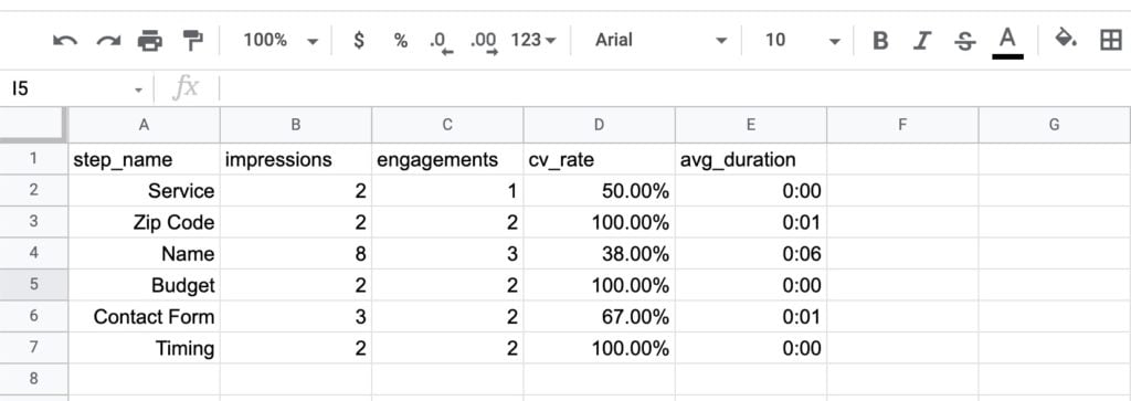 - Conversions (i.e, how many people completed the step by moving to the next step of your form)