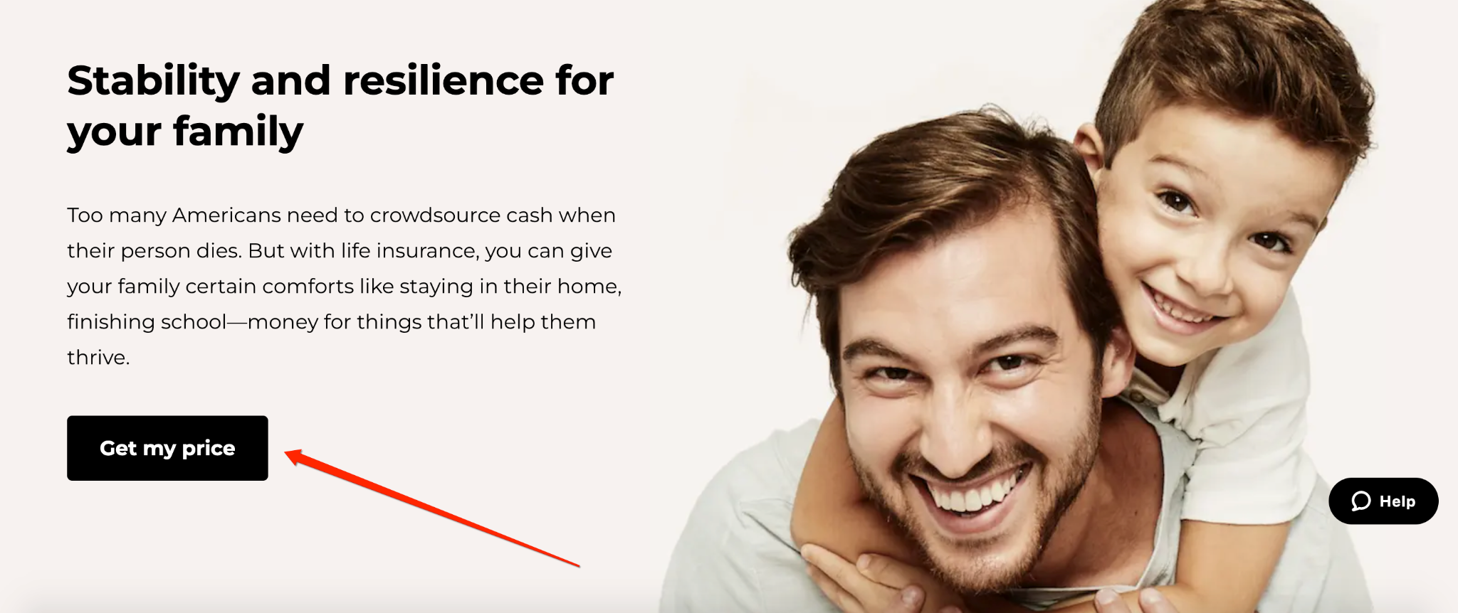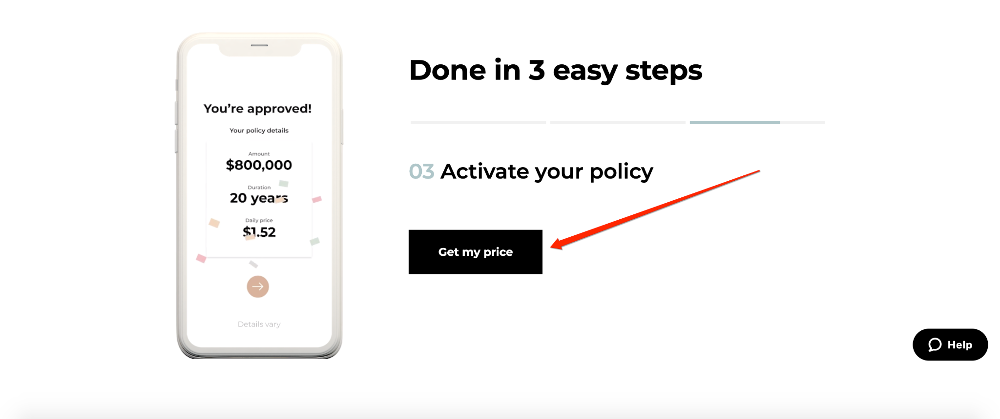 First, a visitor who wants a life insurance quote clicks on “Get my price” from the homepage.