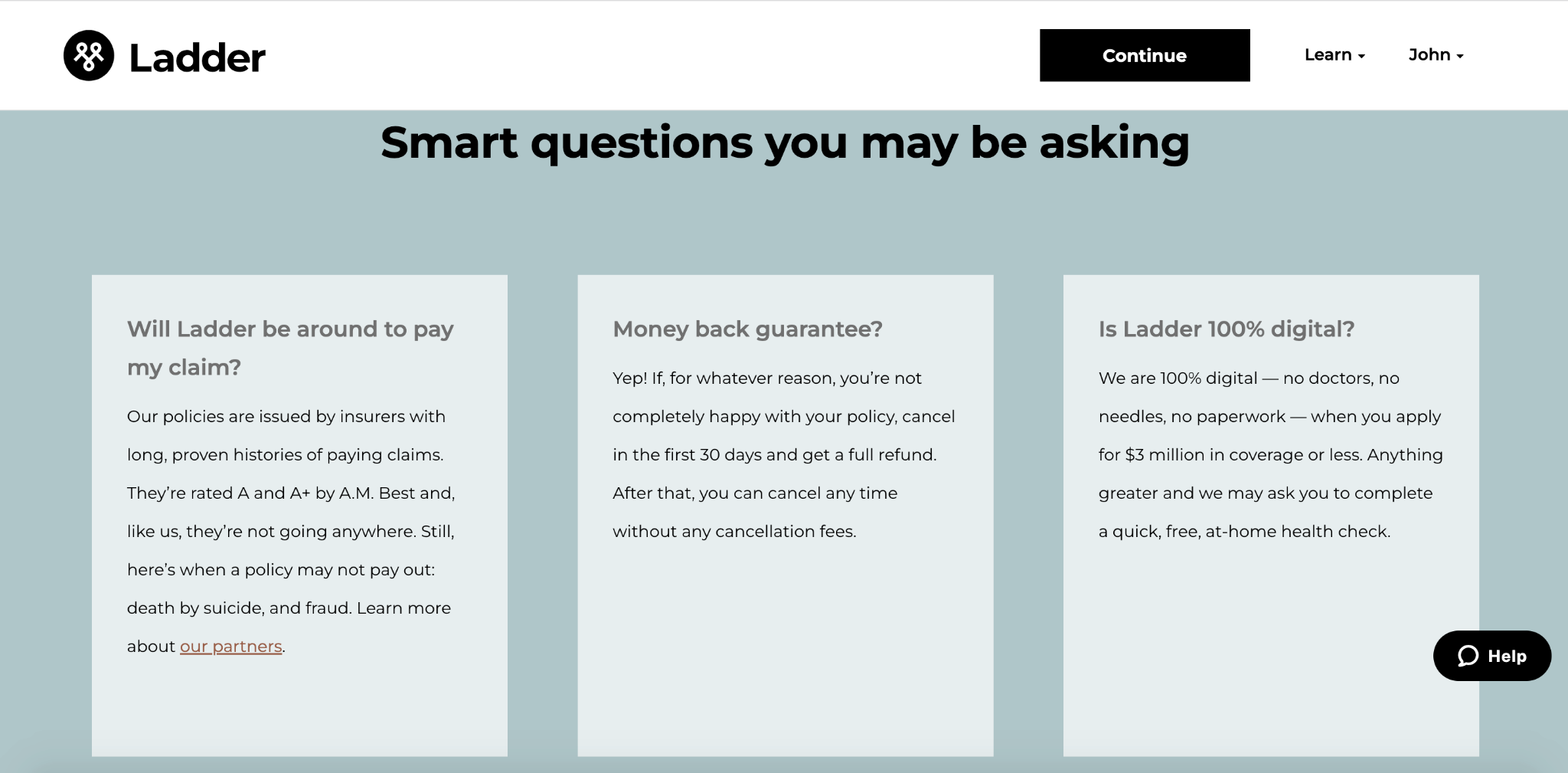 Let’s look at Ladder again, as they do a great job with this aspect of insurance lead generation as well.