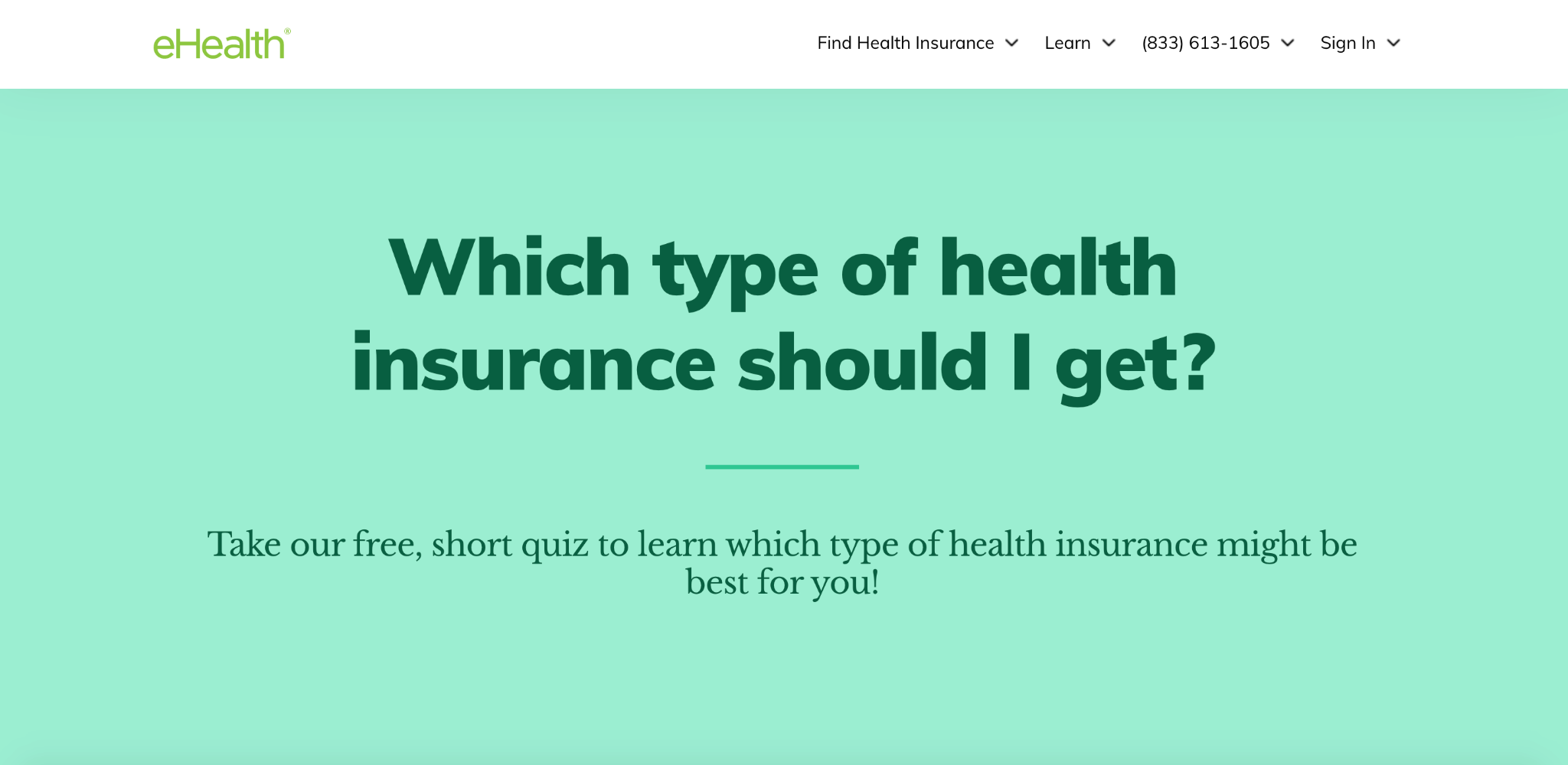 Here’s the first thing visitors see when arriving on eHealth’s site.