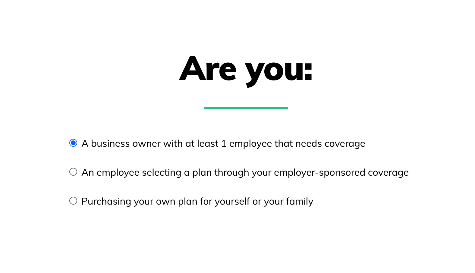 Based on the prospect’s response, they work their way through the rest of the quiz. I’ll say I’m purchasing my own plan for myself and my family for this example.