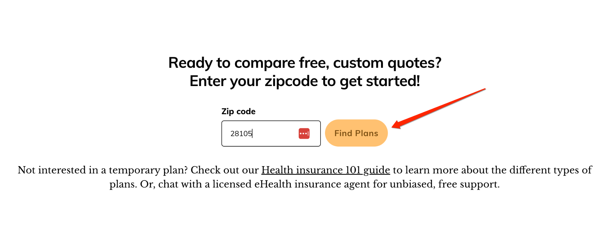 And finally, I can get free, custom quotes by clicking the “Find Plans” CTA at the bottom.