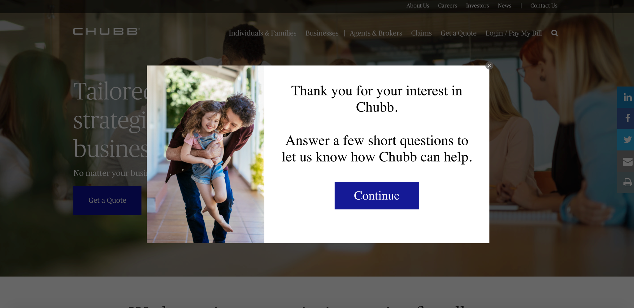 Of course, only a small percentage of visitors will click or tap on this CTA, which is why Chubb uses this exit-intent popup to grab the attention of the majority of visitors that don’t.