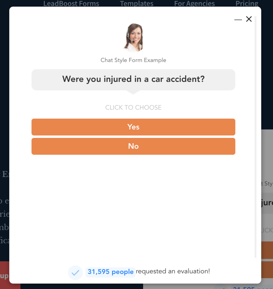 At LeadForms, we’ve found that engaging a prospect with a simple yes or no question, will dramatically boost leads because once the prospect becomes engaged with the form, they are more likely to follow-through and submit the form.