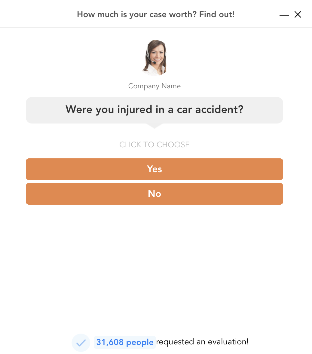 But, how do you gather all these details without sacrificing conversion? Enter the, “Find Out How Much Your Case is Worth” quiz.