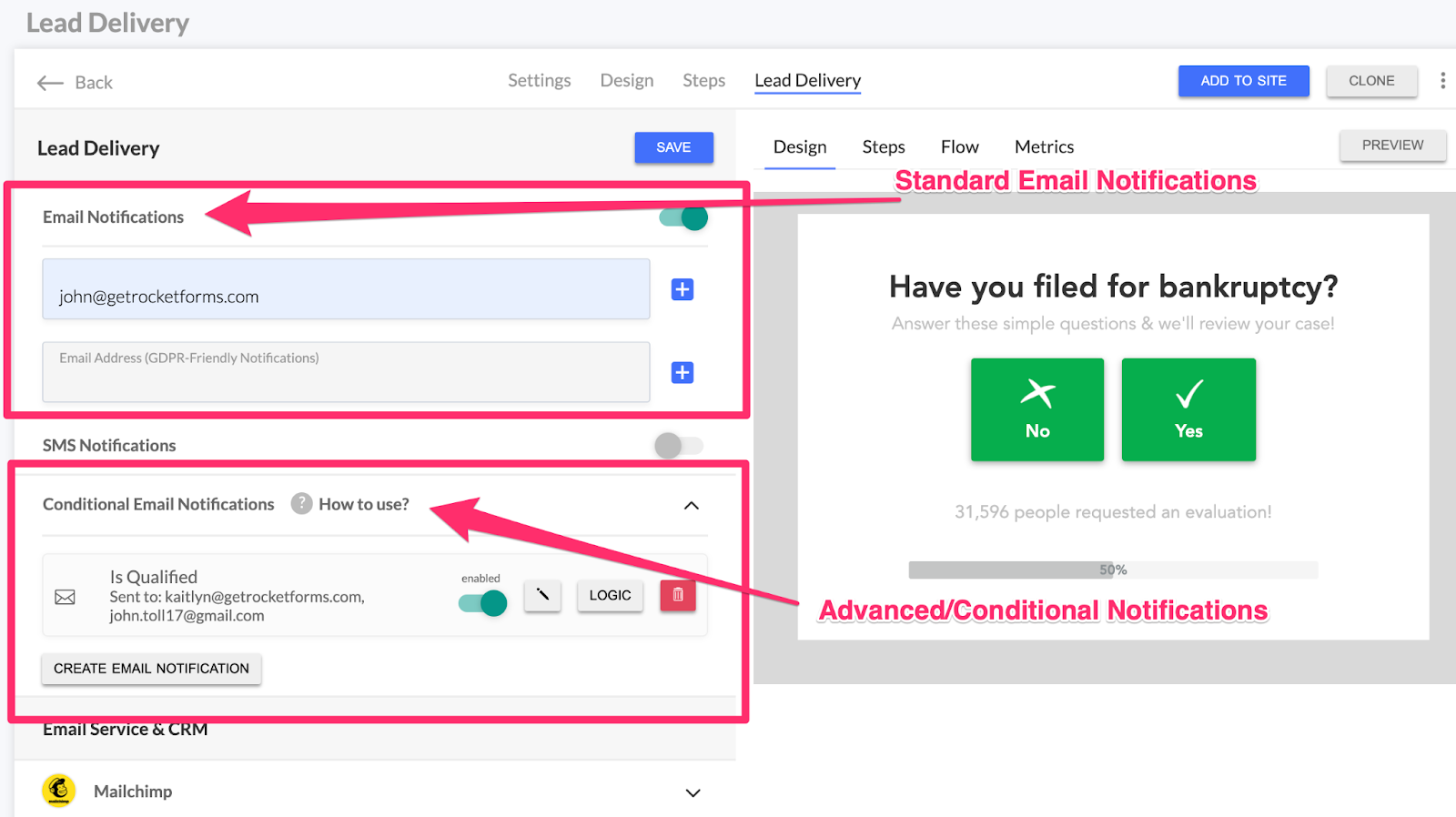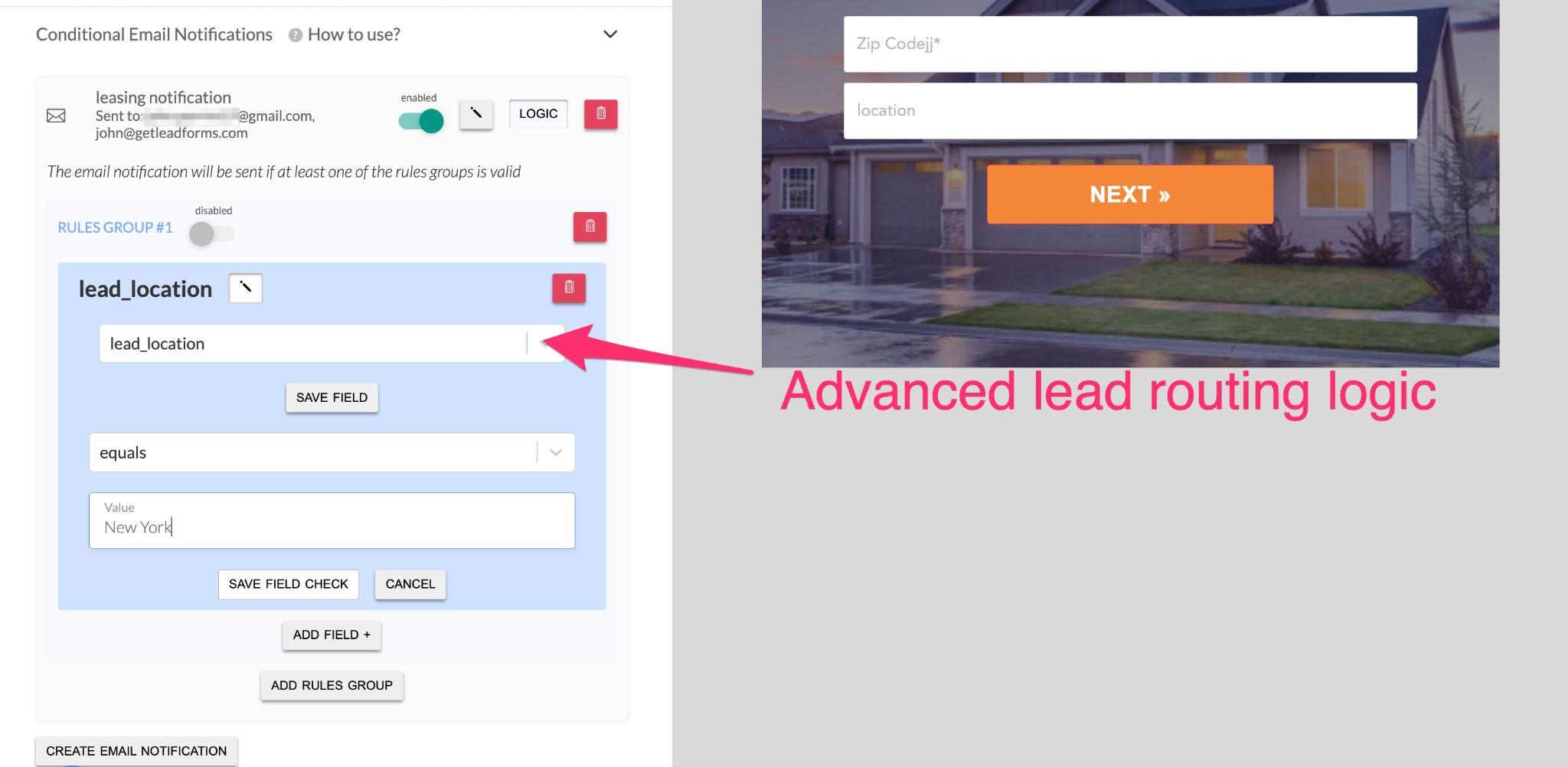 Conditional email notifications are like the regular lead notification feature we’ve already covered, but with a twist: you get more control over when a lead is routed and who it’s routed to.