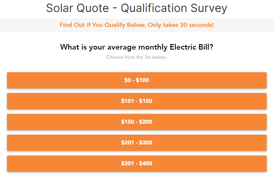 For instance, you could ask: “What’s your budget?” or “When would you like to get started?” or even “What’s your availability?” like in this solar quote lead gen form below:
