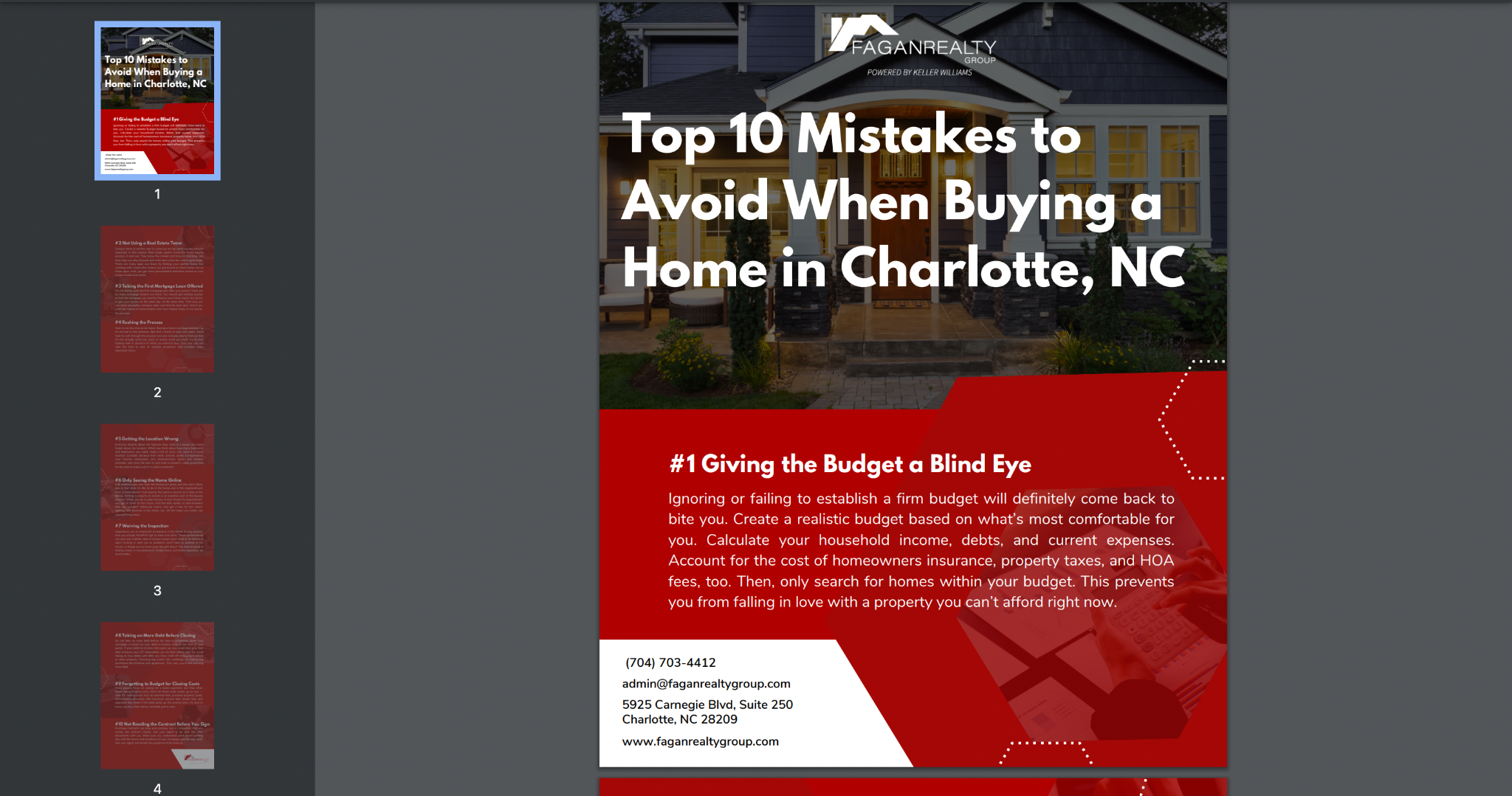 For instance, it can be like this downloadable guide by Fagan Realty Group about “10 Mistakes to Avoid When Buying a Home in Charlotte, NC.”